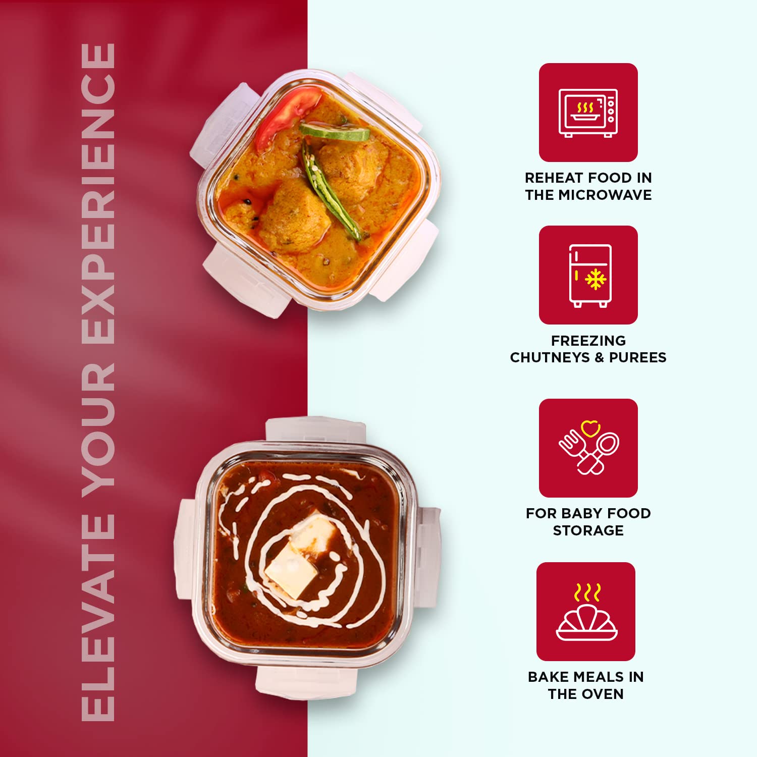 - These multipurpose square containers (320ml each) can be used for meal prep, storing leftovers, carrying meals on the go, reheating in the microwave, baking in the oven, and freezing various food items.