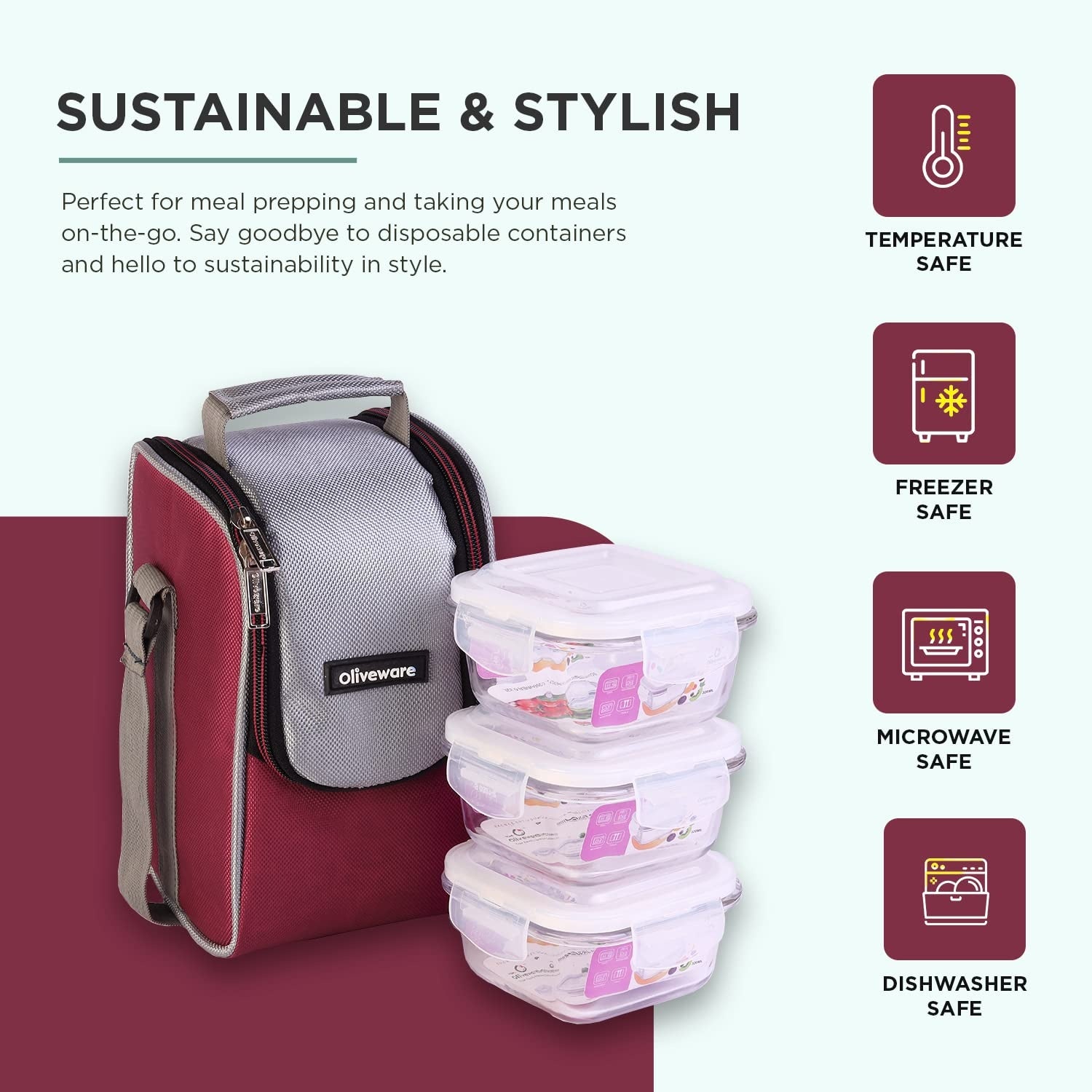 Included Components: 3 Glass Containers, 1 Lunch Bag