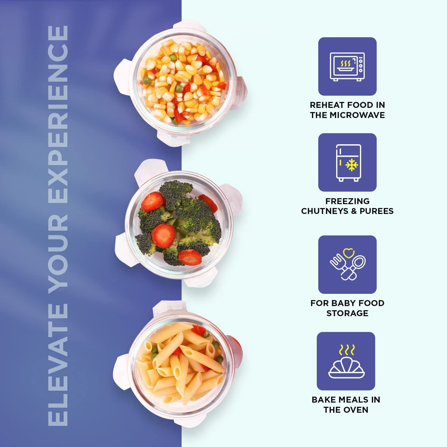 - These multipurpose round containers (400ml each) can be used for meal prep, storing leftovers, carrying meals on the go, reheating in the microwave, baking in the oven, and freezing various food items.