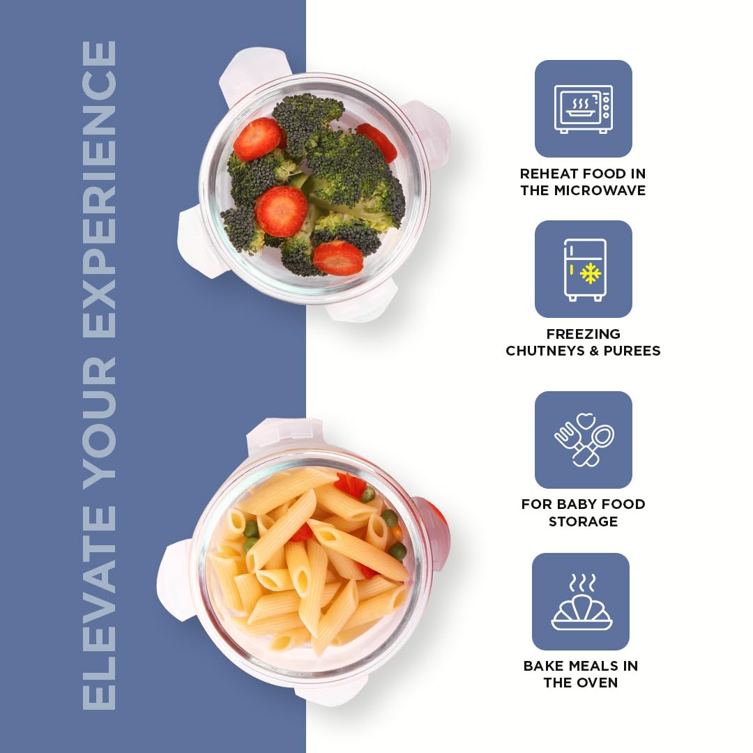 - These multipurpose round containers (400ml each) can be used for meal prep, storing leftovers, carrying meals on the go, reheating in the microwave, baking in the oven, and freezing various food items.