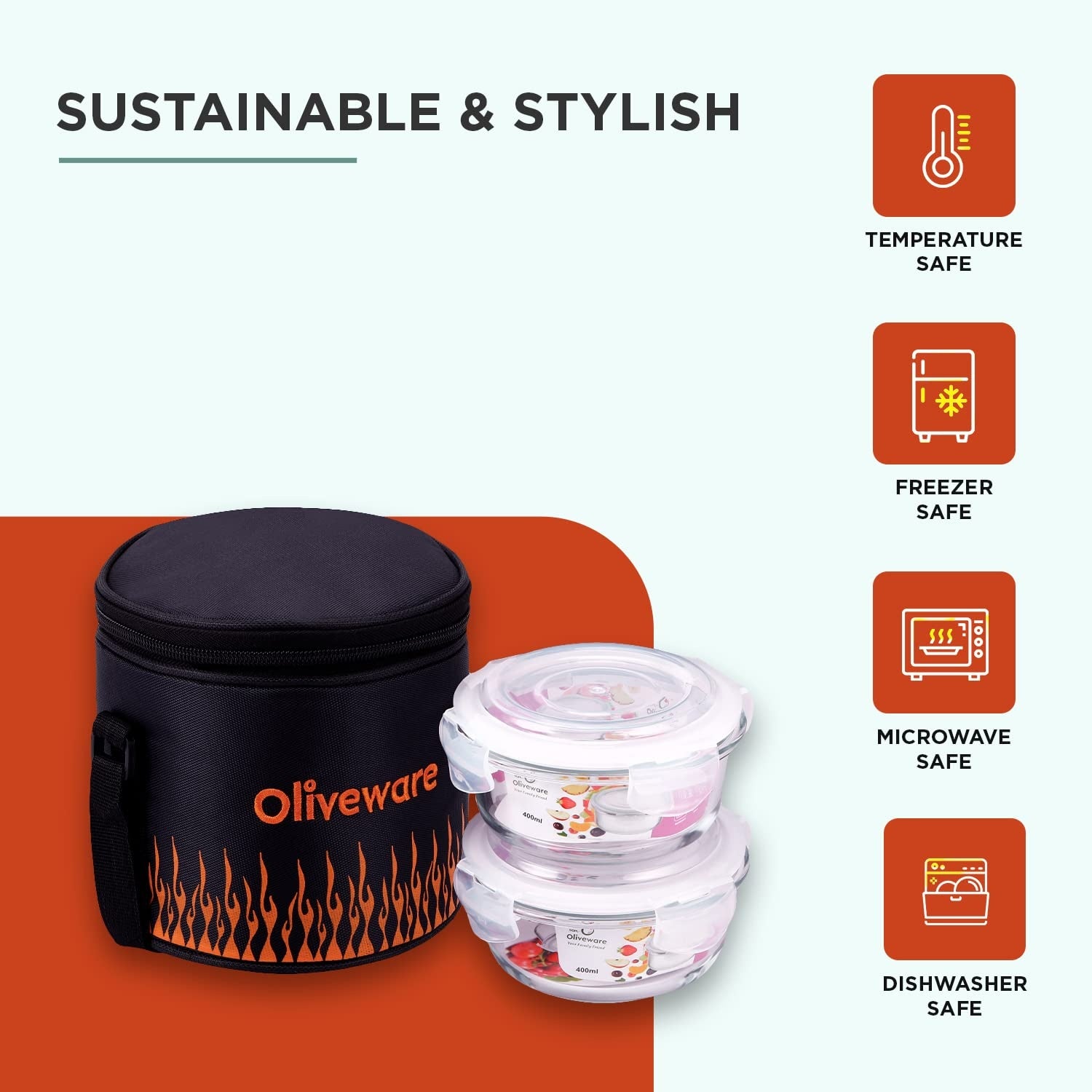 - Oliveware Sizzle Glassware lunchbox are made of durable borosilicate glass, designed to withstand extreme temperatures and daily use. Heat & cold resistance -20°C to 400°C