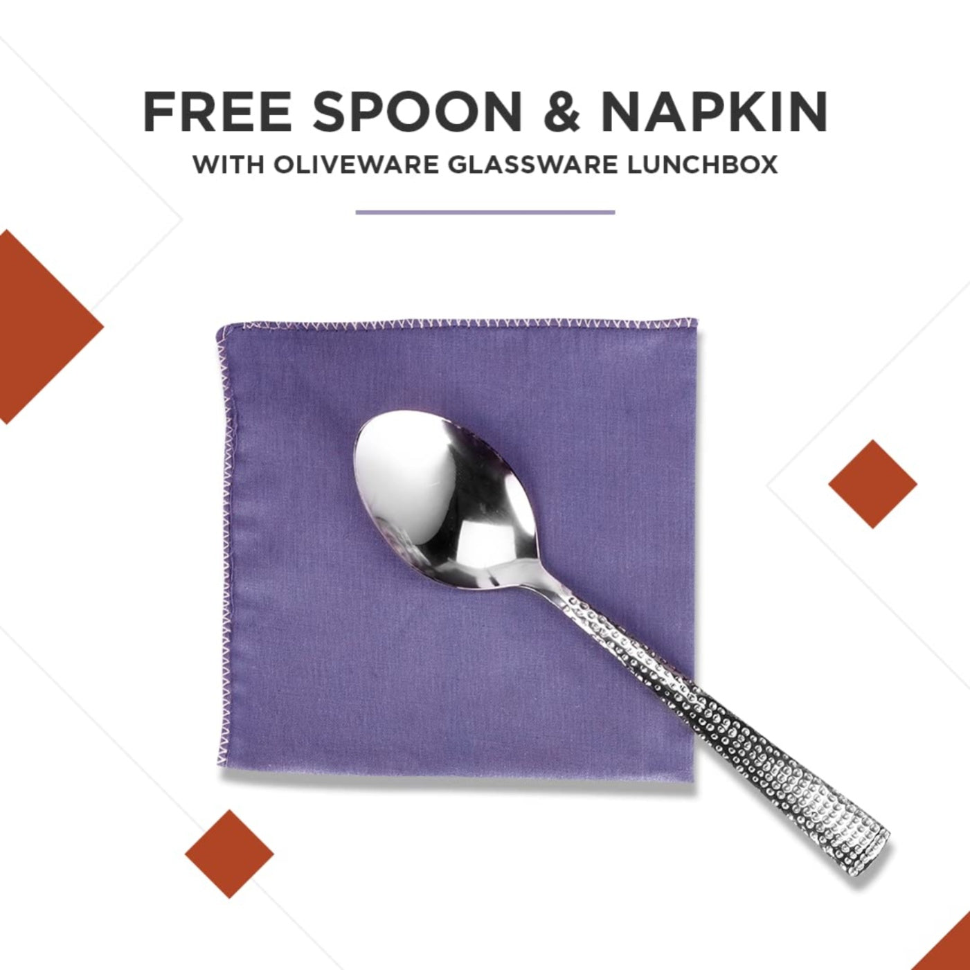 Included Components: 2 Glass Containers, 1 Lunch Bag, 1 Steel Spoon, 1 Napkin