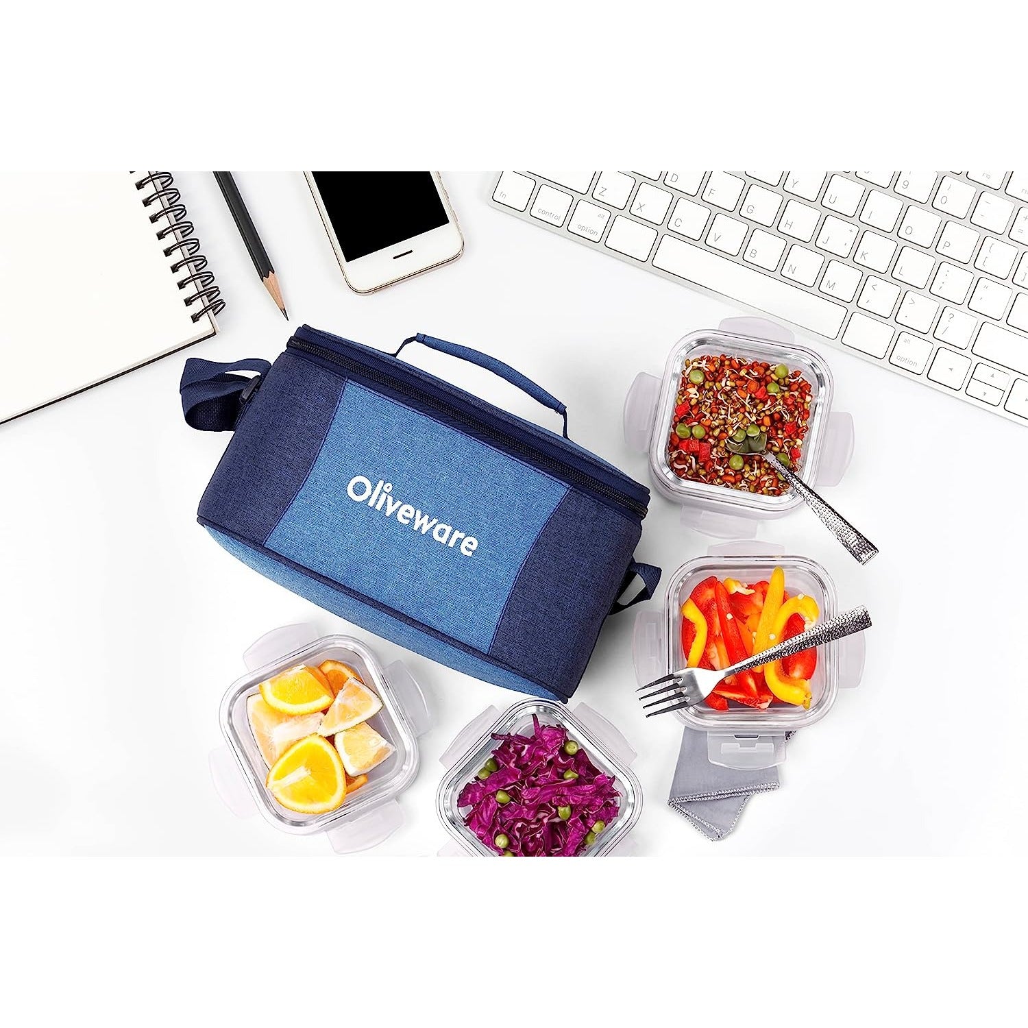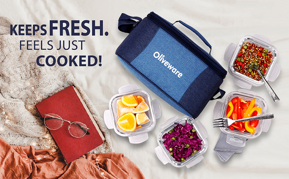 Included Components: 4 Glass Containers, 1 Lunch Bag, 1 Set of Steel spoon & Fork, 1 Napkin